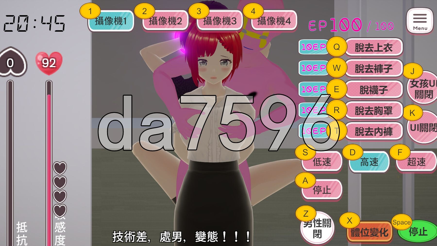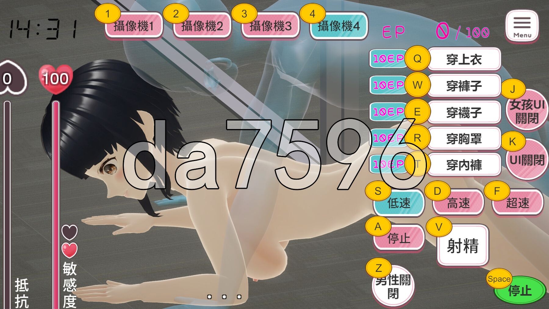 玩家可以用滑鼠或键盘操作角色在场景中自由移动,使用超自然力量,使用停止时间、放置陷阱、全员高潮等技能。