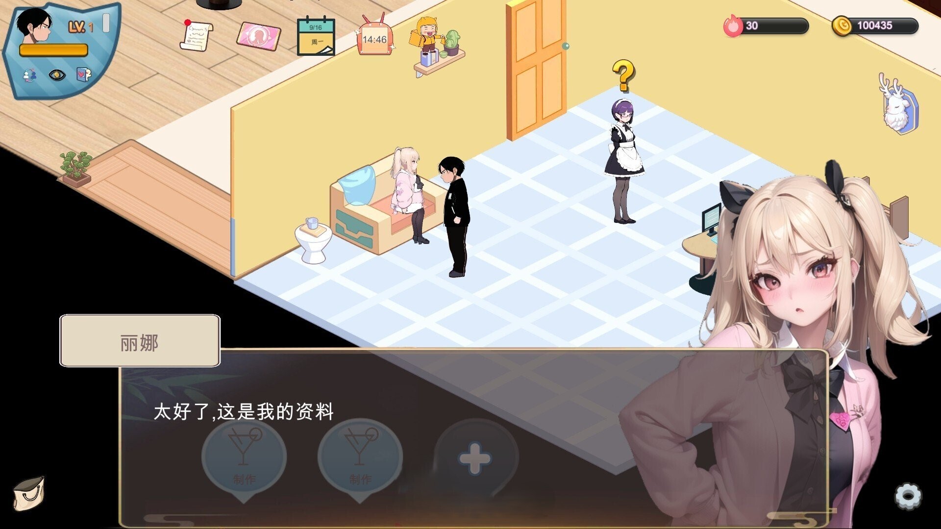 金钱可以帮助你购买各种各样的道具,人气可以吸引到更多漂亮的妹子加入。